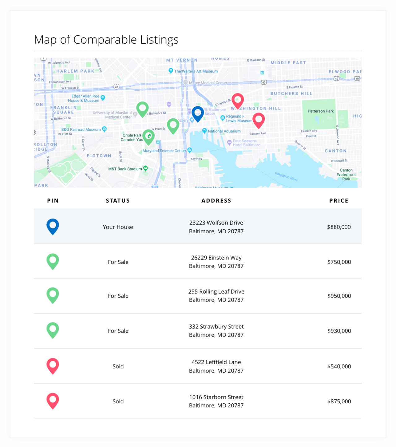 Get data from the real estate professional's local Multiple Listing Service (MLS) Compare recent sales, properties under contract and active listings in a similar area Understand current market prices and trend.